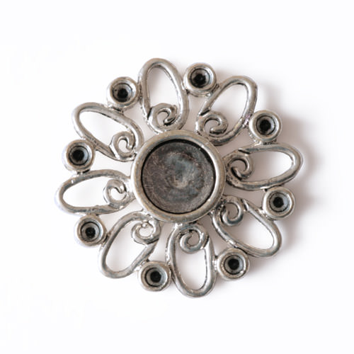 Met plaats voor 8 kleine (punt) plaksteentjes van ca 2mm en 1 grotere plaksteen (plat) van ca 7mm