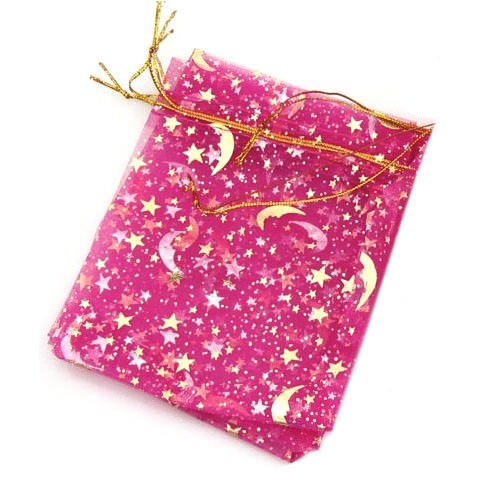Organza cadeauzakje met opdruk van kleine sterren en manen.