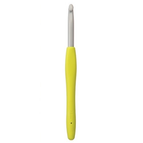 De Clover Amour haaknaalden zijn voorzien van een ergonomische handgreep: een zacht, afgerond handvat met een afgeplat deel waar precies je duim op kan rusten tijdens het haken.