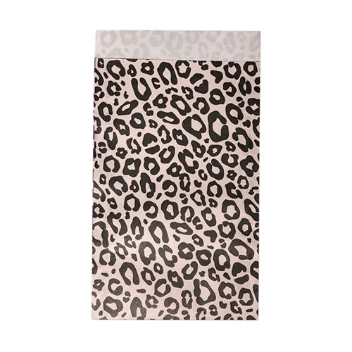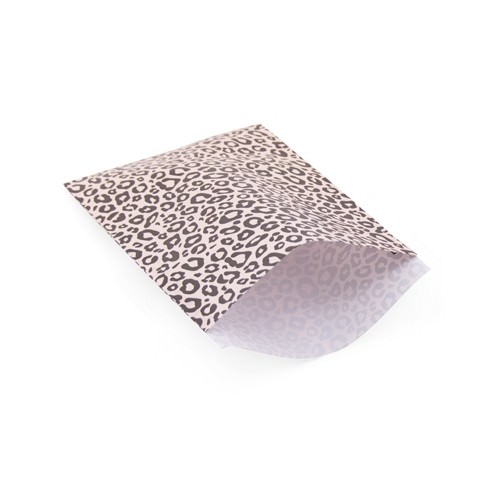 Papieren cadeauzakje flatbag met luipaard print 17x25 cm.