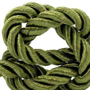 Trendy weave koord, gedraaid satijnkoord (met drie draden), wordt ook wel atlastouw genoemd.